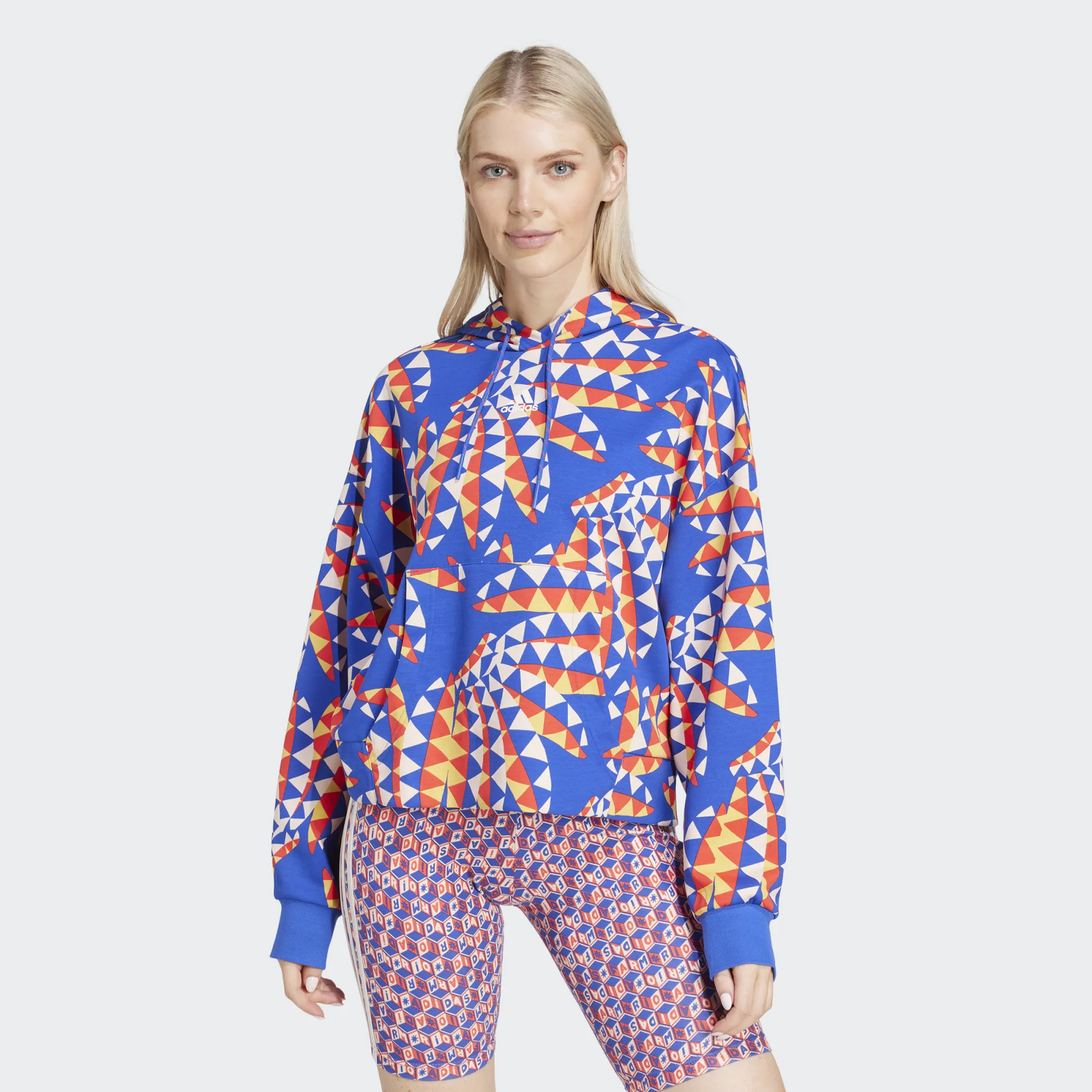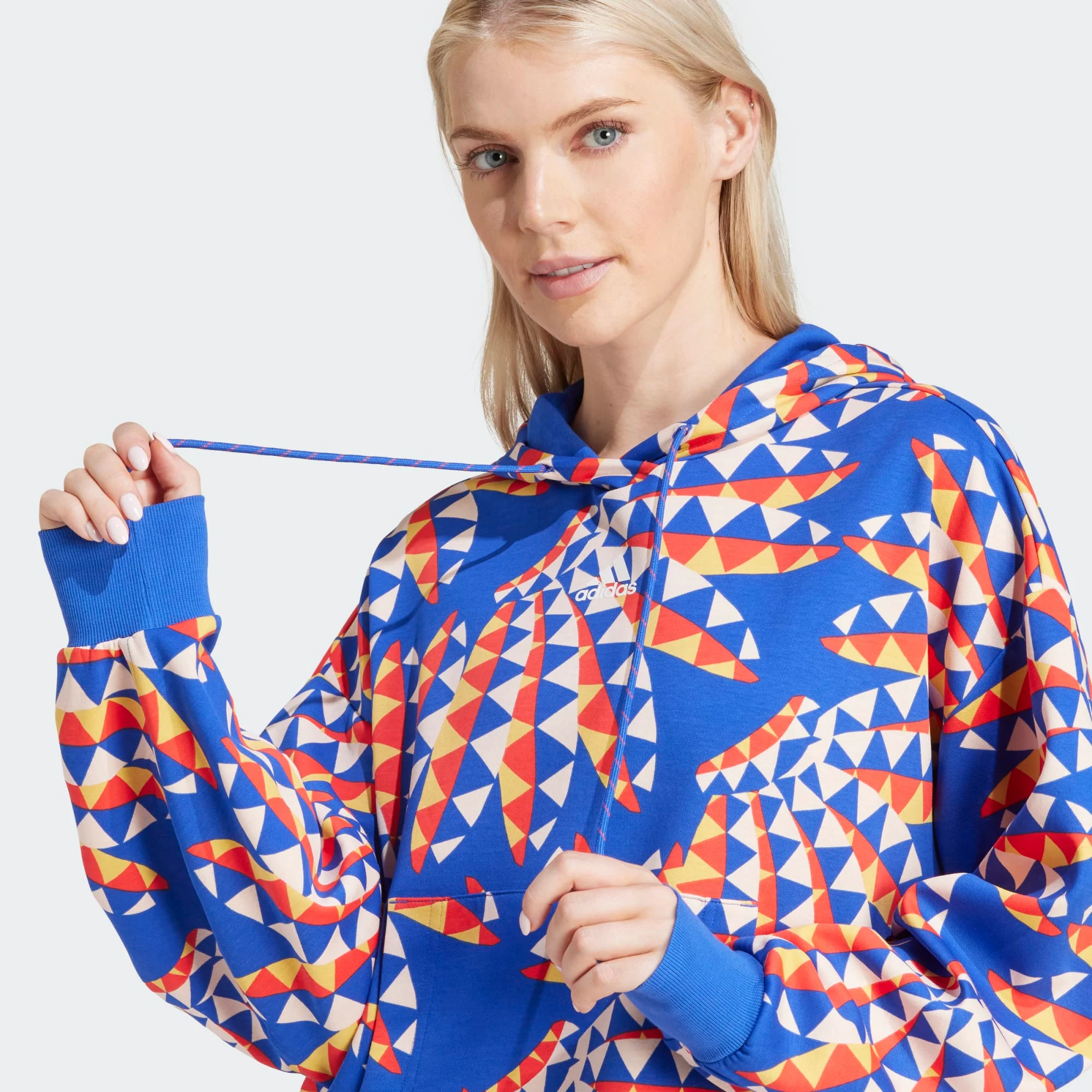 Poussez votre style vers de nouveaux sommets avec ce sweat à capuche adidas, une collaboration de conception avec la marque brésilienne FARM. Inspirés par les couleurs rayonnantes de la lumière du soleil à travers un kaléidoscope, les imprimés accrocheurs combinent formes et teintes pour un look vibrant et énergisant. Conçue pour un confort maximal, la coupe ample et les épaules tombantes vous offrent de l’espace pour bouger librement, tandis que la capuche spacieuse vous offre une couverture supplémentaire lorsque vous en avez besoin. Les 3 bandes audacieuses courent le long de la capuche centrale et à l’arrière pour une touche d’inattendu.