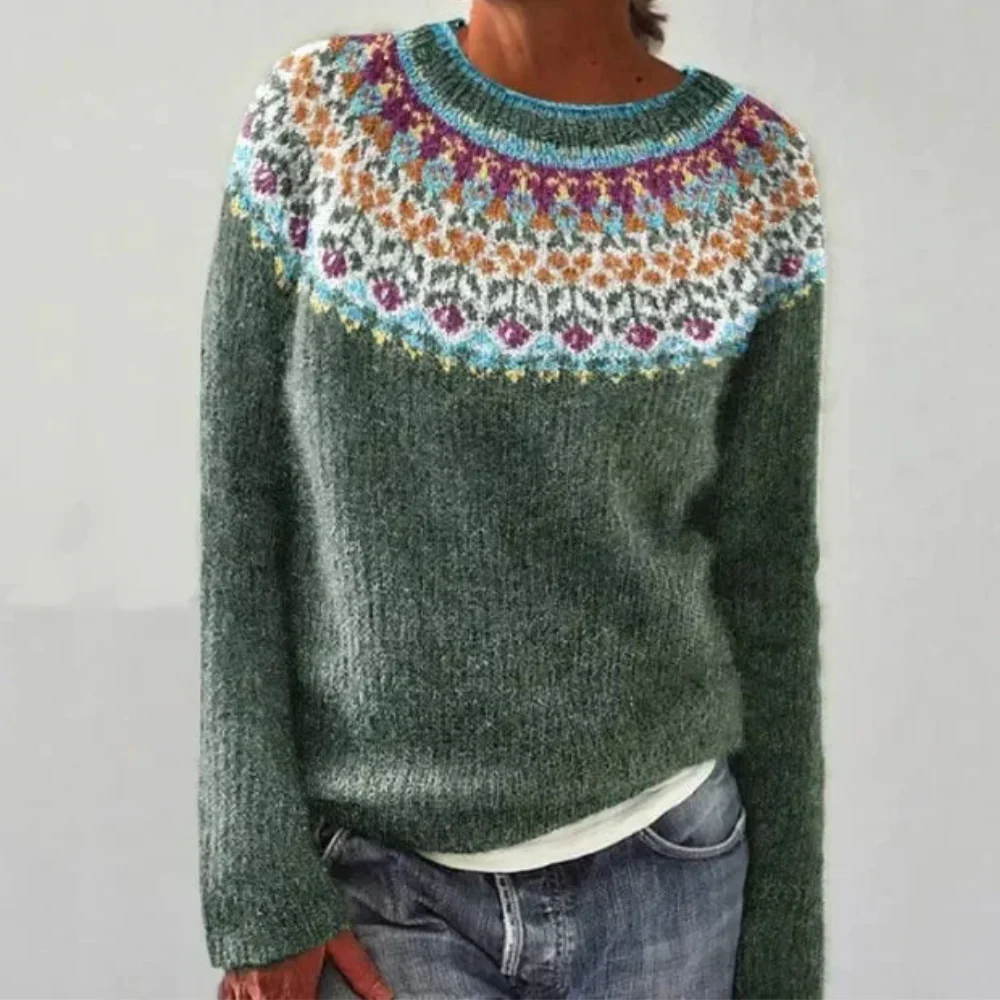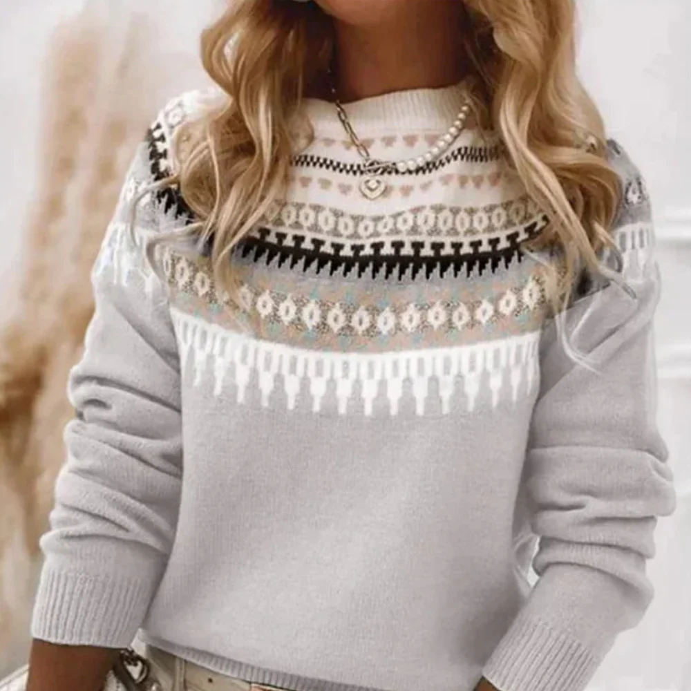 Adrienne-Rose | Pull Knit Femme Col Rond en Maille Épaisse avec Motif Géométrique Élégant