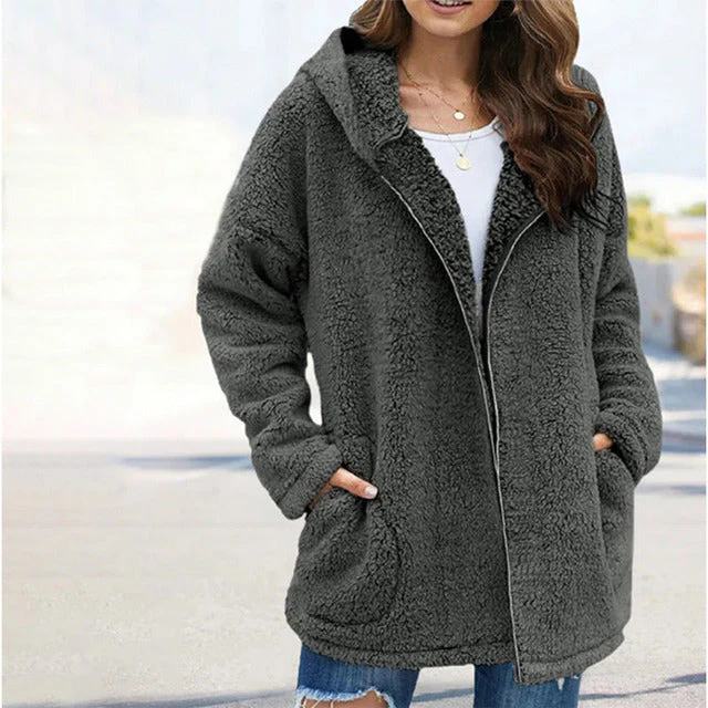 Alainie | Teddy Jacket Oversize à Capuche pour Femme, Confort et Chaleur
