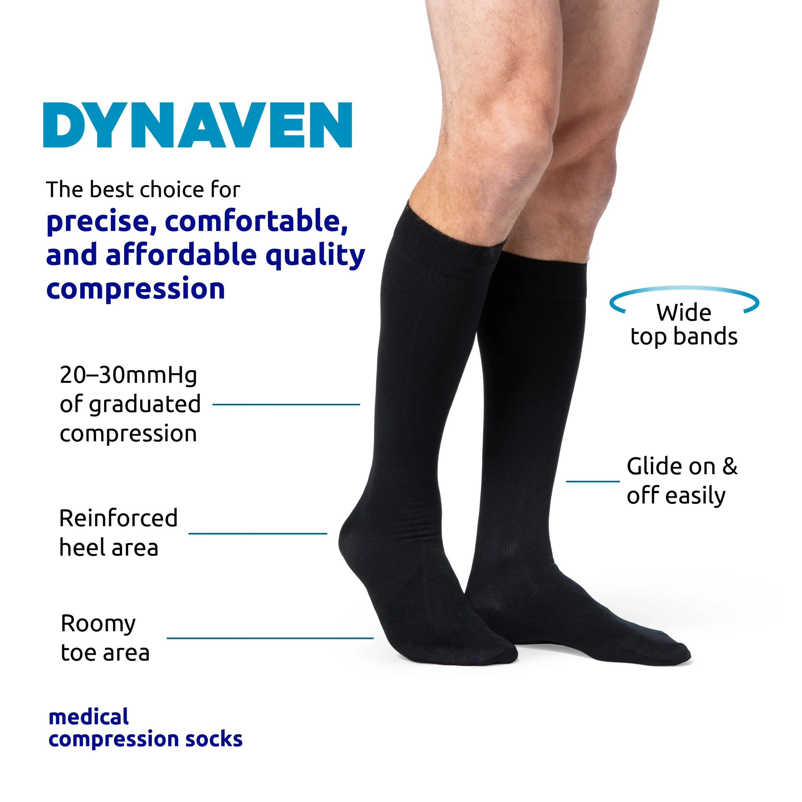 Dynaven Opaque Ribbed Men’s Knee High 20-30 mmHg w/ Silicone Top