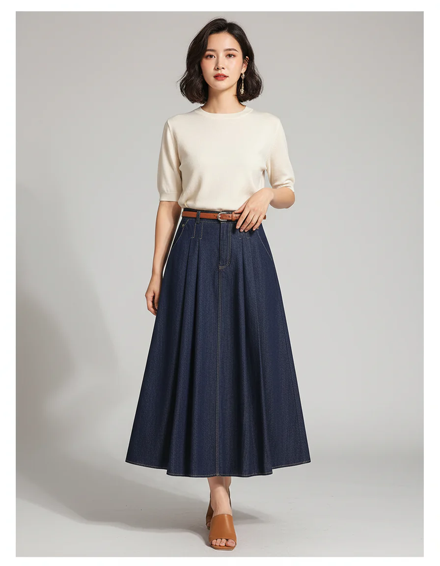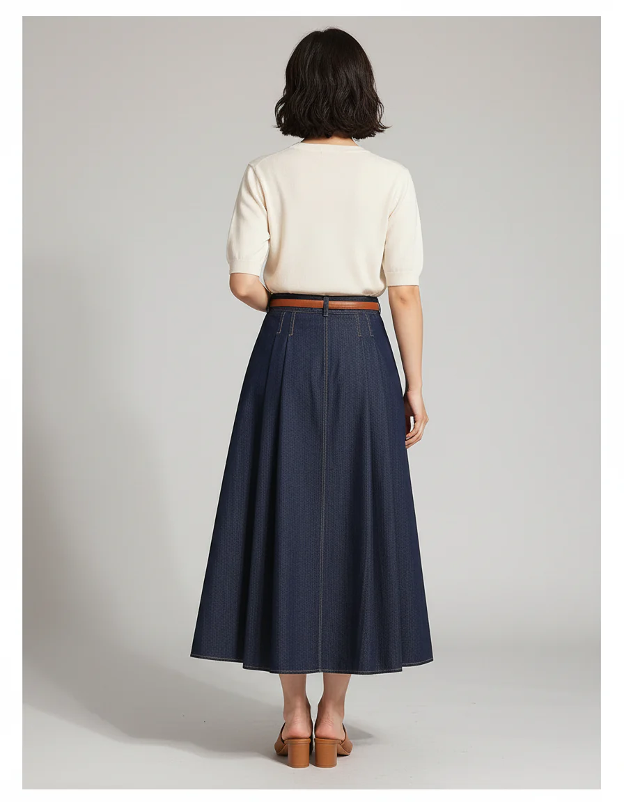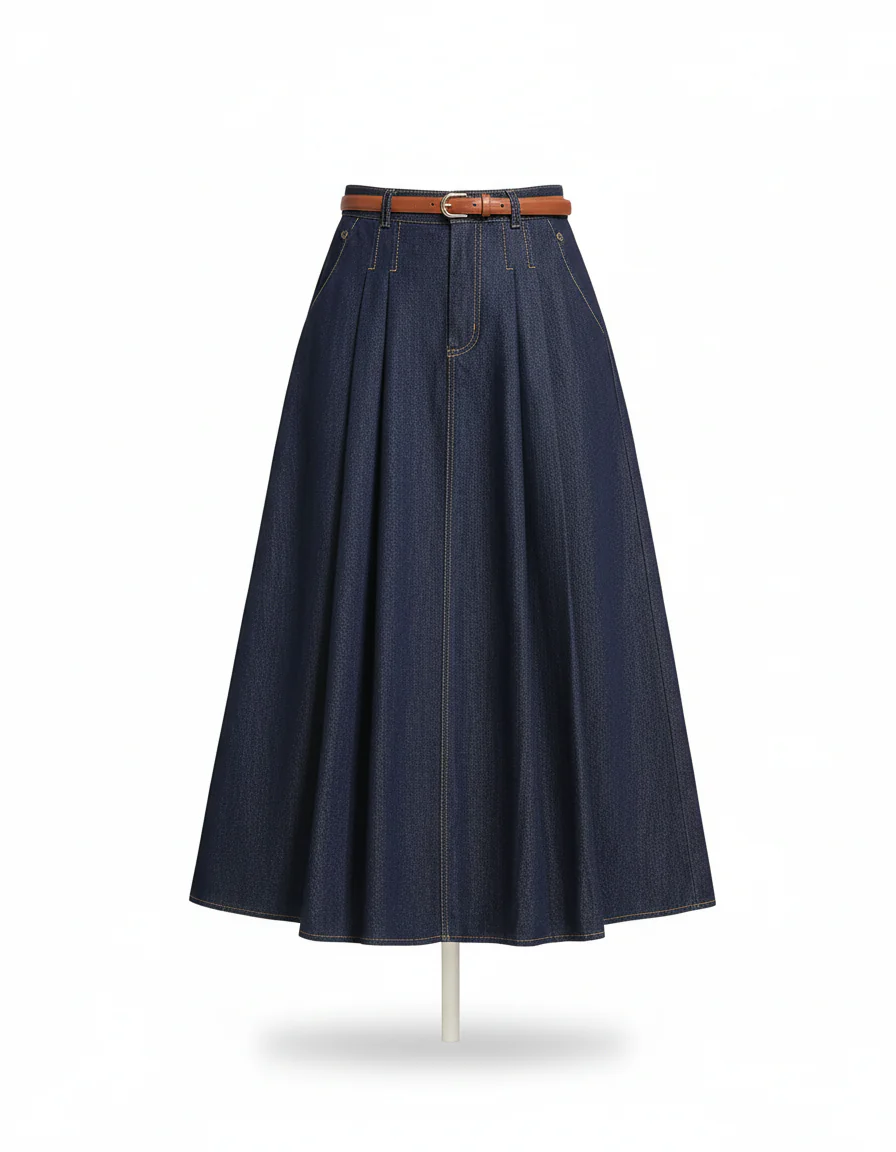 Usage de la Jupe Jean Plissée Longue