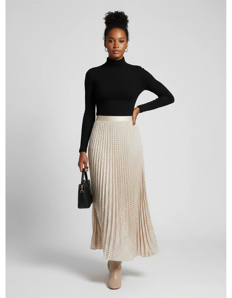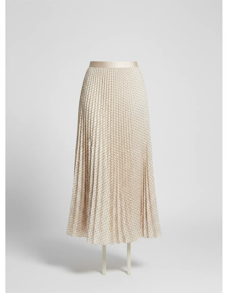 Jupe Longue Plissée Beige avec motif à pois