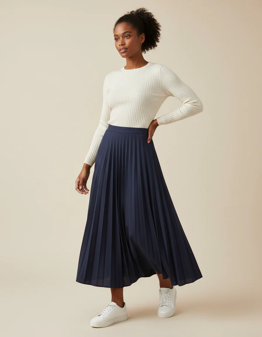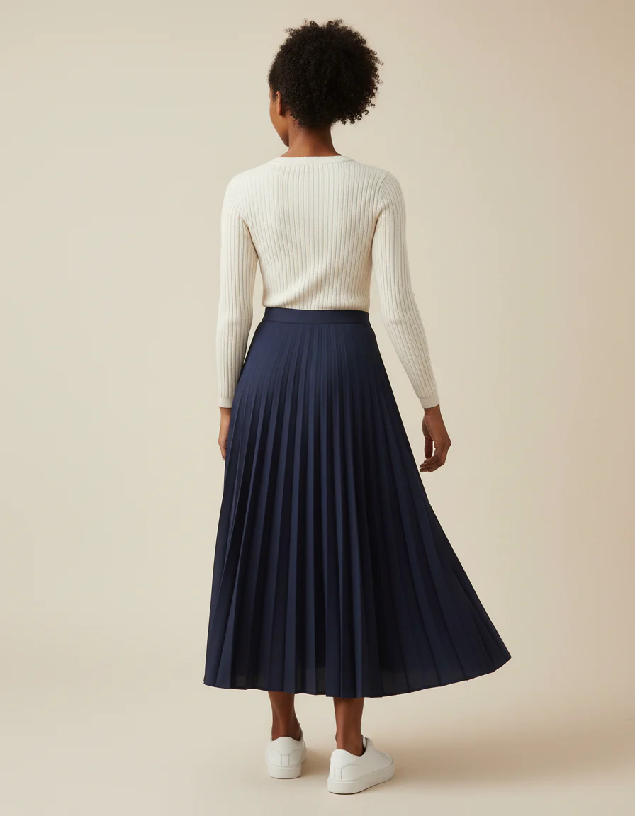 Usage de la Jupe Plissée bleue marine taille haute élégante