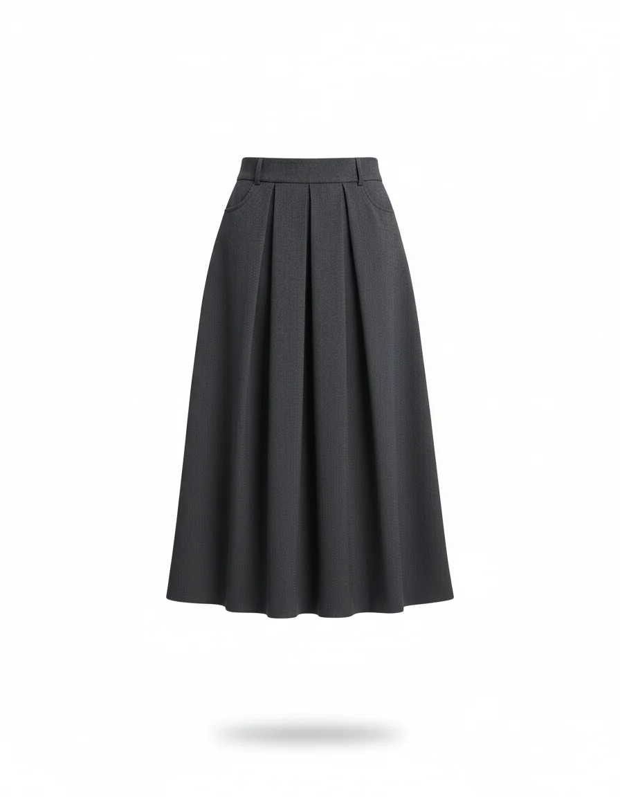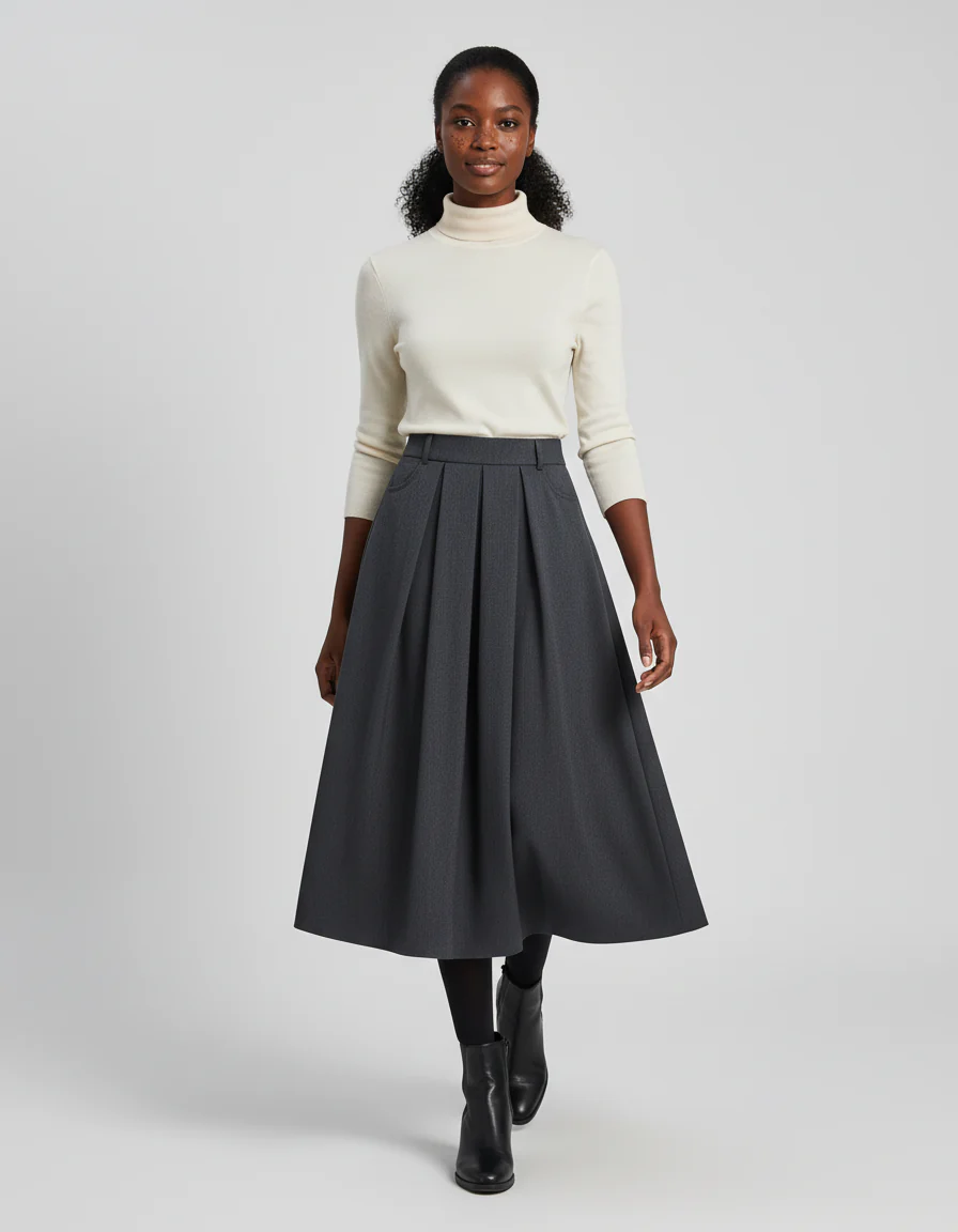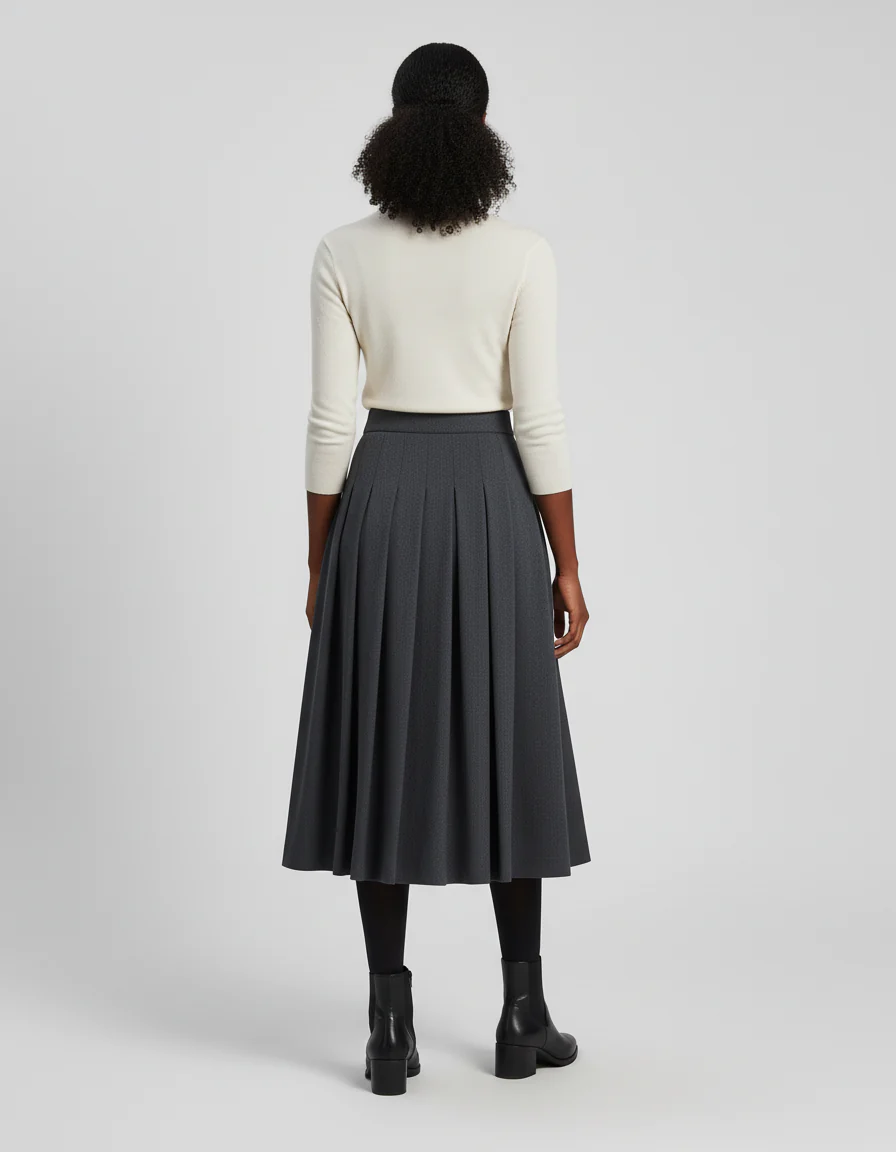 Jupe Plissée Évasée Longueur Midi pour Hanche Large