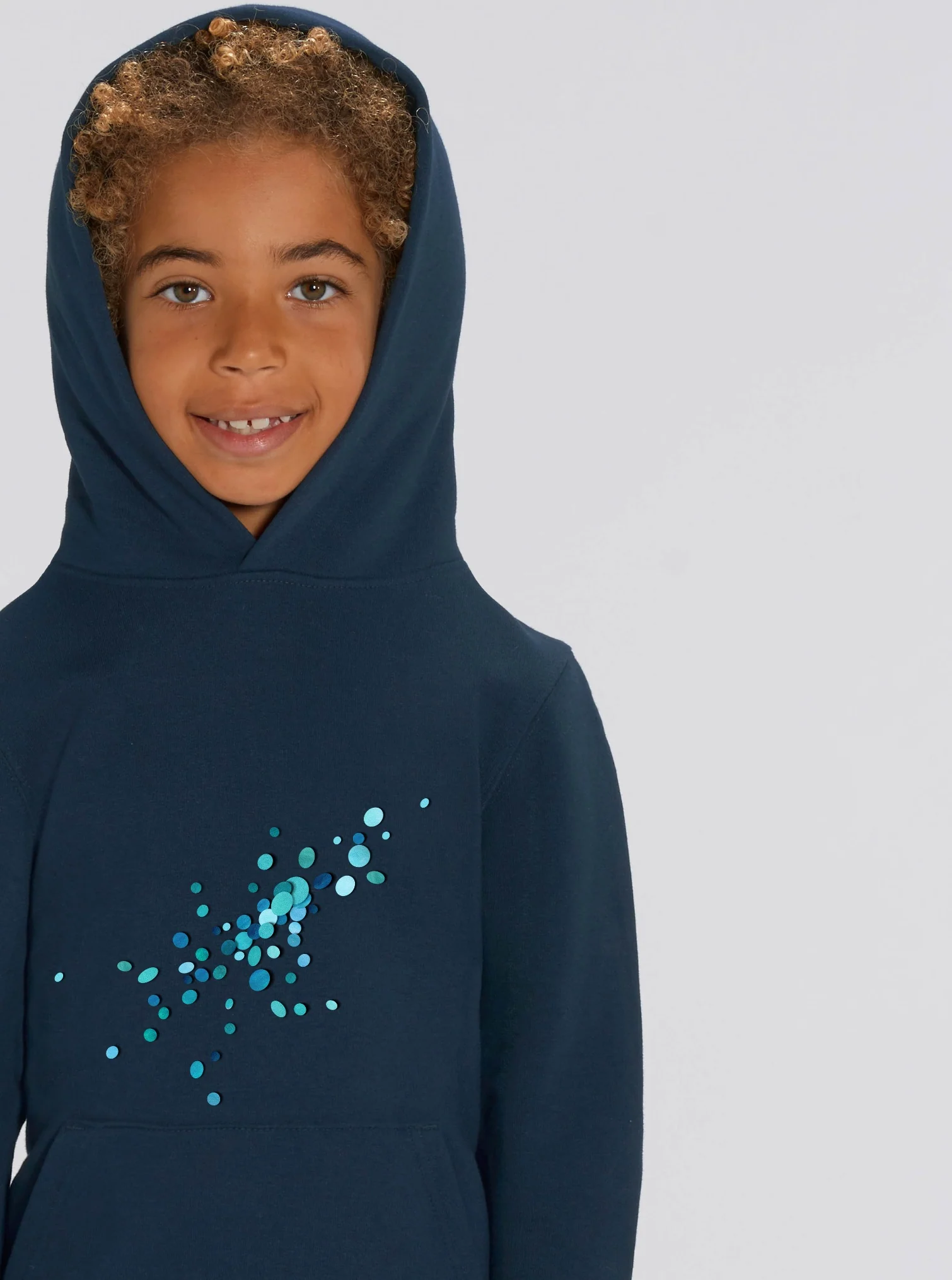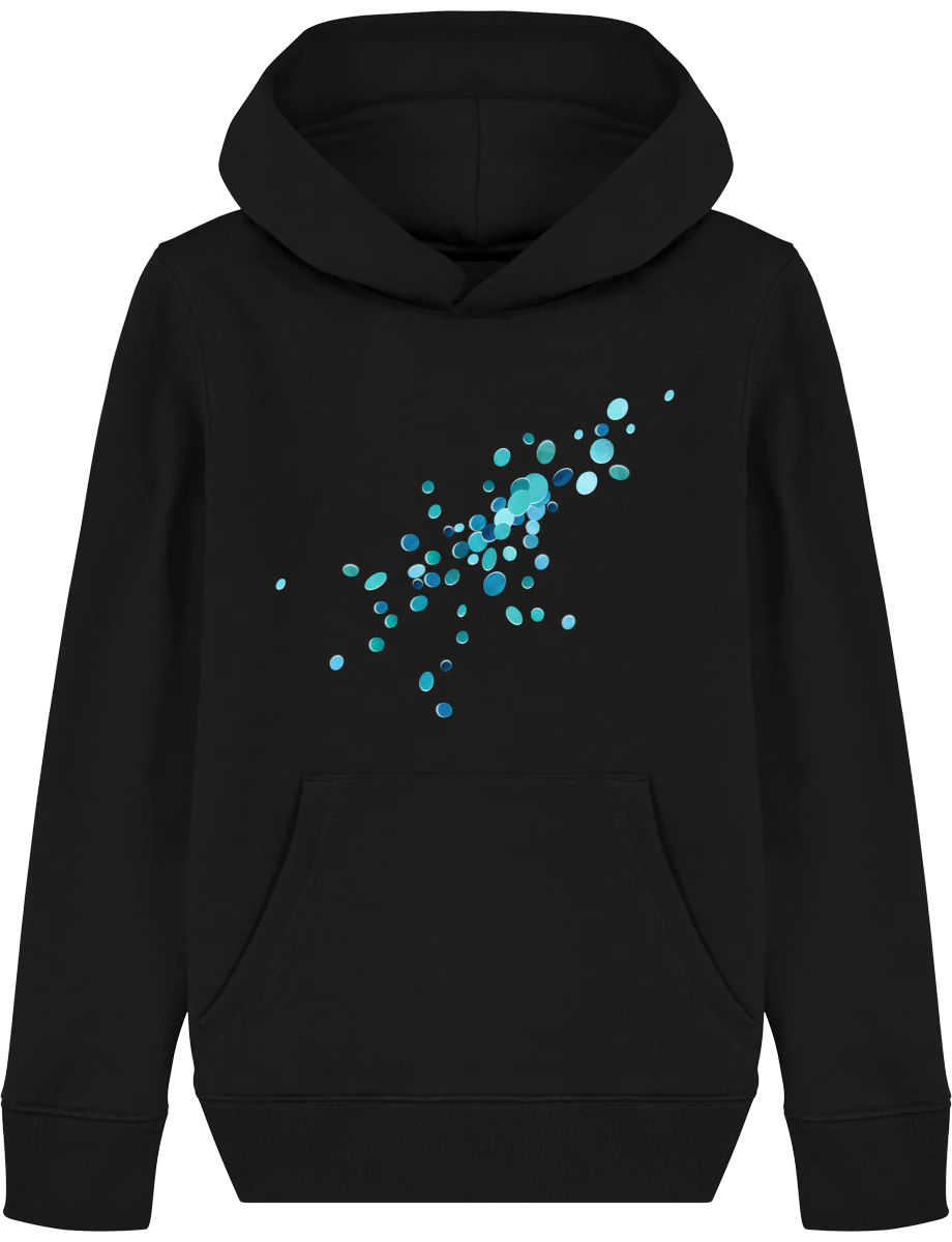 Sweat-shirt à capuche pour enfant en coton bio et polyester recyclé ultra doux.