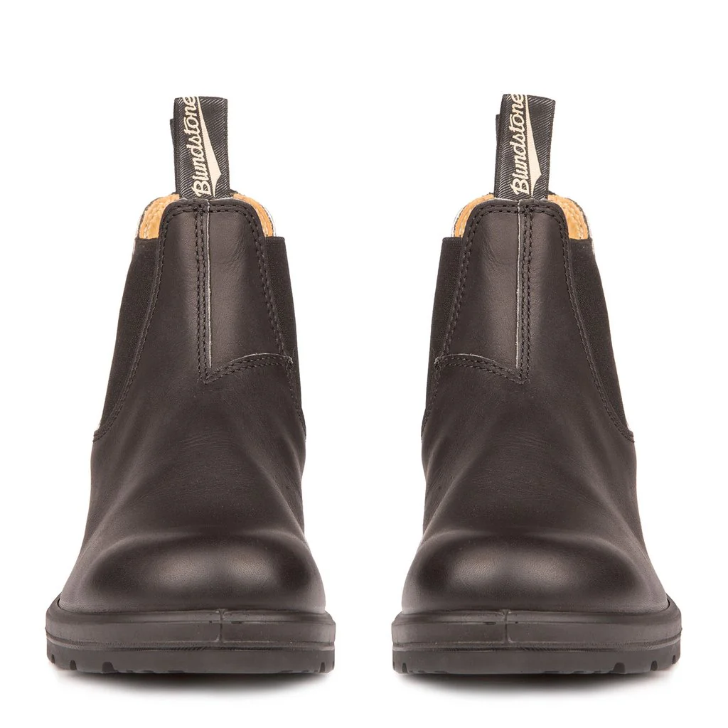 La botte Chelsea Blundstone 558 en noir. Une double couche de cuir en accroît le confort et la durée de vie. À l’intérieur, un cuir doux accueille vos pieds. À l’extérieur, un cuir huilé robuste assure à vos bottes une excellente longévité. Pointures unisexes.